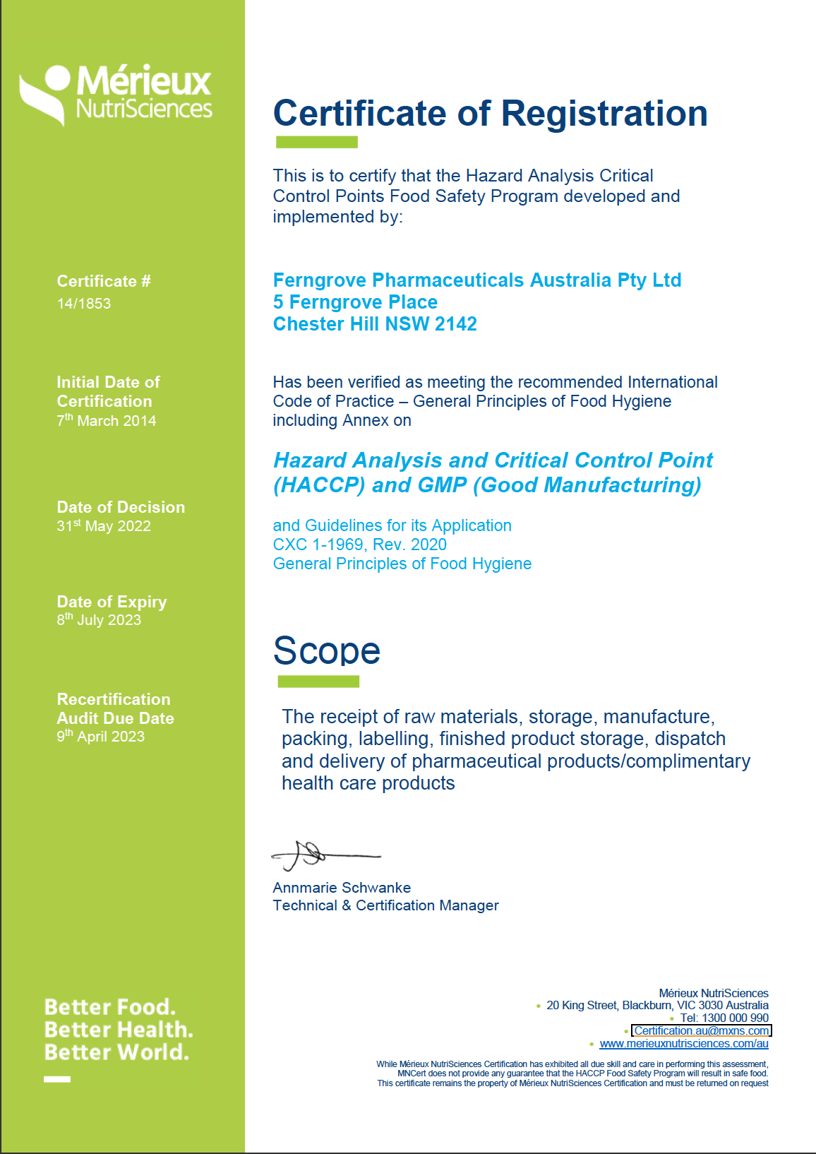 Our quality program begins with a comprehensive quality system that covers all aspects of everything we do – from sourcing and testing of raw materials, through all stages of manufacturing, analysis of manufactured products, "Release for Sale" (by the TGA Authorised Person), warehousing and storage and all associated systems and process.